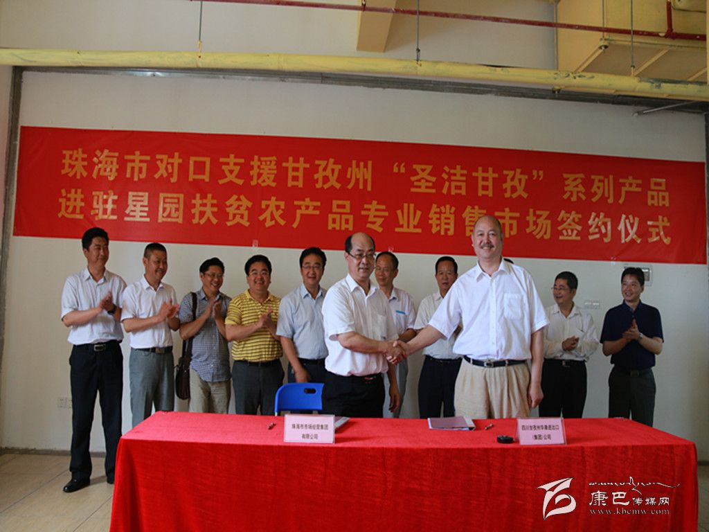 珠海市為了更好幫助甘孜州推銷特色農(nóng)副產(chǎn)品,還專門在位于繁華市區(qū)的星園市場開辟了珠海市對口幫扶地區(qū)特優(yōu)農(nóng)副產(chǎn)品專業(yè)銷售市場,并設(shè)立了近400平方米的“圣潔甘孜”特色產(chǎn)品專銷區(qū)。在參觀了甘孜州產(chǎn)品專區(qū)后,我州考察團領(lǐng)導(dǎo)與珠海市相關(guān)領(lǐng)導(dǎo)共同見證了珠海市對口支援甘孜州“圣潔甘孜”系列產(chǎn)品進(jìn)駐星園扶貧農(nóng)產(chǎn)品專業(yè)銷售市場簽約儀式,我州知名民營企業(yè)華康進(jìn)出口(集團)公司正式成為進(jìn)駐星園扶貧農(nóng)產(chǎn)品專業(yè)銷售市場的第一家州內(nèi)企業(yè)。