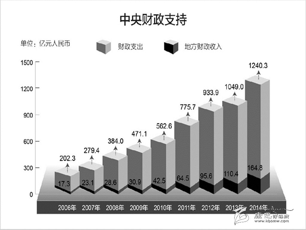 中央政府歷來高度重視西藏的發(fā)展,十分關(guān)心西藏各族人民的福祉,舉全國之力支援西藏,以優(yōu)惠的政策和強大的人力、物力、財力支持,推動西藏的發(fā)展進步。從1952年到2014年,中央政府對西藏的各項財政補助達6480.8億元,占西藏地方公共財政支出的92.8%。1980年以來,中央先后六次召開西藏工作座談會,從中國社會主義現(xiàn)代化建設(shè)全局出發(fā),對西藏的發(fā)展建設(shè)作出整體規(guī)劃。從1994年第三次西藏工作座談會開始,中央實施對口支援西藏的政策,安排60個中央國家機關(guān)、18個省市和17家中央企業(yè)對口支援西藏。20年來,先后有七批4496名優(yōu)秀干部、1466名專業(yè)技術(shù)人才進藏工作,實施援藏項目7615個,投入援藏資金260億元,主要用于改善民生和基礎(chǔ)設(shè)施建設(shè),為西藏經(jīng)濟社會發(fā)展作出了重要貢獻。