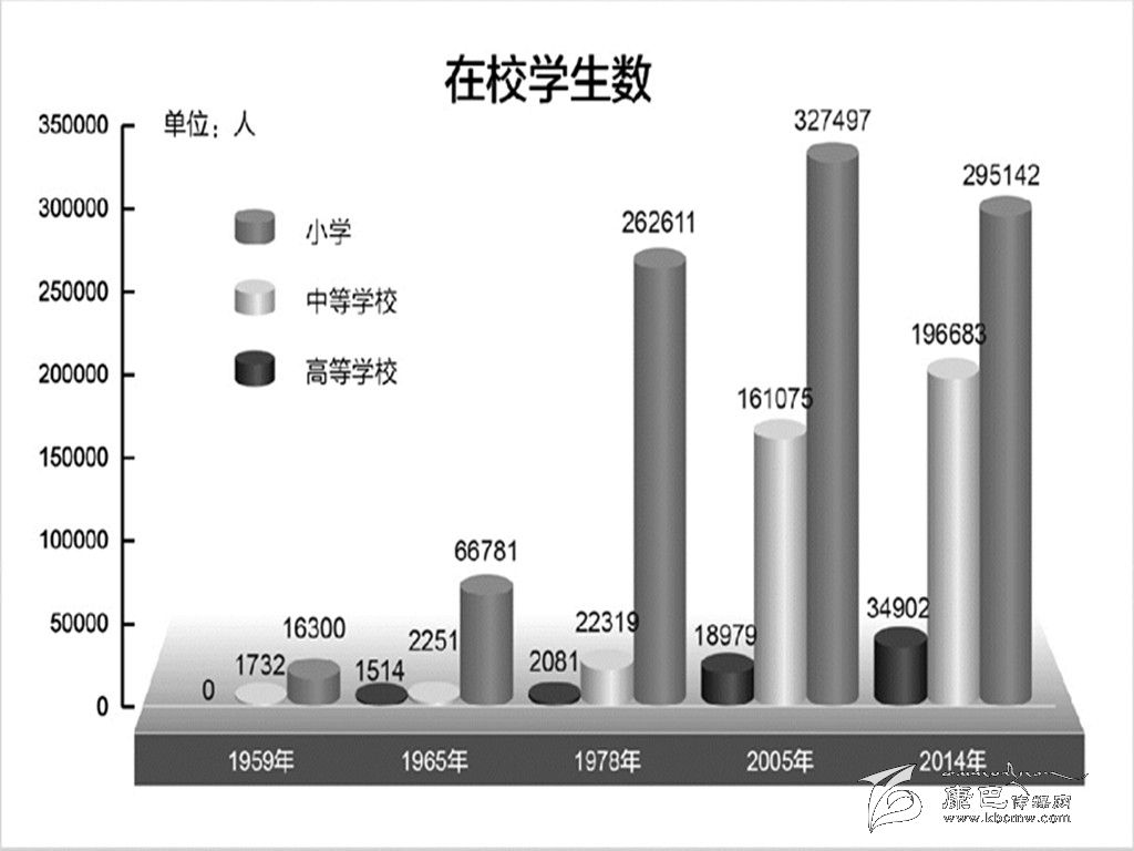 教育事業(yè)日新月異,實現(xiàn)學有所教。全區(qū)所有縣(區(qū))全面完成普及九年義務(wù)教育,一個涵蓋學前教育、基礎(chǔ)教育、職業(yè)教育、高等教育、成人教育、特殊教育的比較完整的現(xiàn)代教育體系已經(jīng)形成。實現(xiàn)了從學前到高中階段15年免費教育,農(nóng)牧區(qū)義務(wù)教育學生營養(yǎng)改善計劃全面落實,政策和資金覆蓋率均達到100%。“三包”(包吃、包住、包學習費用)政策覆蓋學前教育到高中階段所有農(nóng)牧民子女和城鎮(zhèn)困難家庭子女,且不斷提高標準,年生均標準已提高到3000元。全面啟動實施城鎮(zhèn)三年、農(nóng)牧區(qū)兩年學前雙語教育工程。2014年底,幼兒園在園幼兒達8萬多人,學前教育毛入園率達60%。2014年底,全區(qū)擁有普通高等院校6所;中等職業(yè)學校9所,在校生1.7萬人;高級中學22所,完全中學4所,初級中學93所,十二年和九年一貫制學校各3所,小學829所。小學適齡兒童入學率達到99.64%,青壯年文盲率下降至0.57%以內(nèi),人均受教育年限達到8.6年,新增勞動力受教育年限達到12年以上。1984年,中央政府作出“在內(nèi)地為西藏辦學培養(yǎng)人才”的重大戰(zhàn)略決策,現(xiàn)有21個省市辦有西藏班(校),已累計為西藏培養(yǎng)了大中專畢業(yè)生3.2萬余人。目前西藏不僅有了自己培養(yǎng)的碩士、博士,而且有了一批享譽全國的專家、學者,逐步建立了近30個科研院所,有各類專業(yè)技術(shù)人員69709人,學科領(lǐng)域涉及歷史、經(jīng)濟、人口、語言、宗教和農(nóng)業(yè)、畜牧、林業(yè)、生態(tài)、生物、藏醫(yī)藥、鹽湖、地熱、太陽能等數(shù)十個門類。其中,藏學、高原生態(tài)、藏醫(yī)藥等學科研究在全國處于領(lǐng)先水平,產(chǎn)生了一批有世界影響的學術(shù)成果。