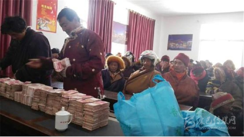 俄達門巴村民現(xiàn)場領(lǐng)取分紅款。