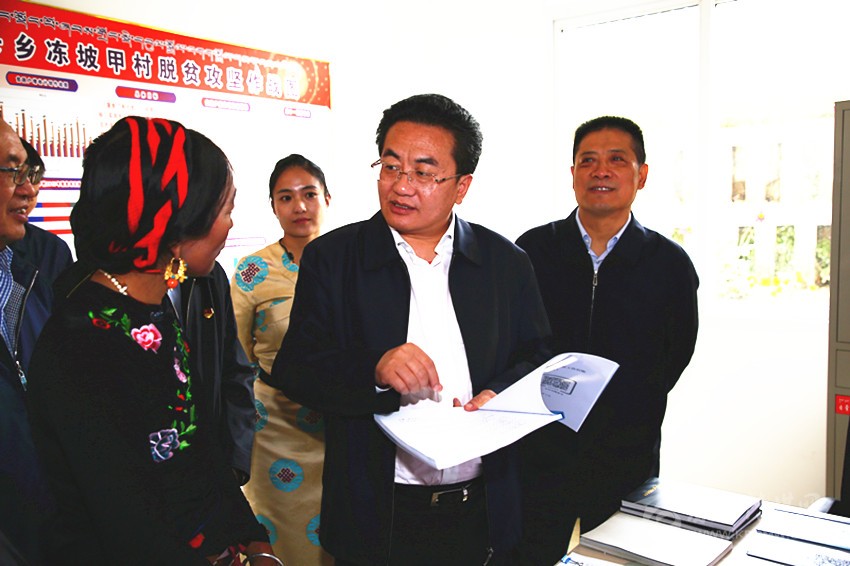 道孚縣各卡鄉(xiāng)凍坡甲村是今年計劃退出的貧困村,鄧小剛仔細(xì)查閱脫貧攻堅臺賬,深入了解“一低五有”等情況。他要求,要堅持把黨建工作作為加快藏區(qū)經(jīng)濟(jì)社會發(fā)展、實(shí)現(xiàn)藏區(qū)群眾同步奔康的引領(lǐng),建強(qiáng)基層黨支部,做好黨員培養(yǎng)發(fā)展工作,充分發(fā)揮基層黨組織戰(zhàn)斗堡壘作用和黨員先鋒模范作用。要把黨的脫貧攻堅和惠民政策落實(shí)到村到戶到人,大力開展?fàn)巹?chuàng)“四好村”,辦好“農(nóng)民夜校”,加強(qiáng)基層依法治理,進(jìn)一步加大感恩奮進(jìn)教育,加快建設(shè)守望相助、美麗繁榮、文明和諧的藏區(qū)新村,努力探索具有中國特色藏區(qū)特點(diǎn)現(xiàn)代農(nóng)業(yè)發(fā)展新路子。