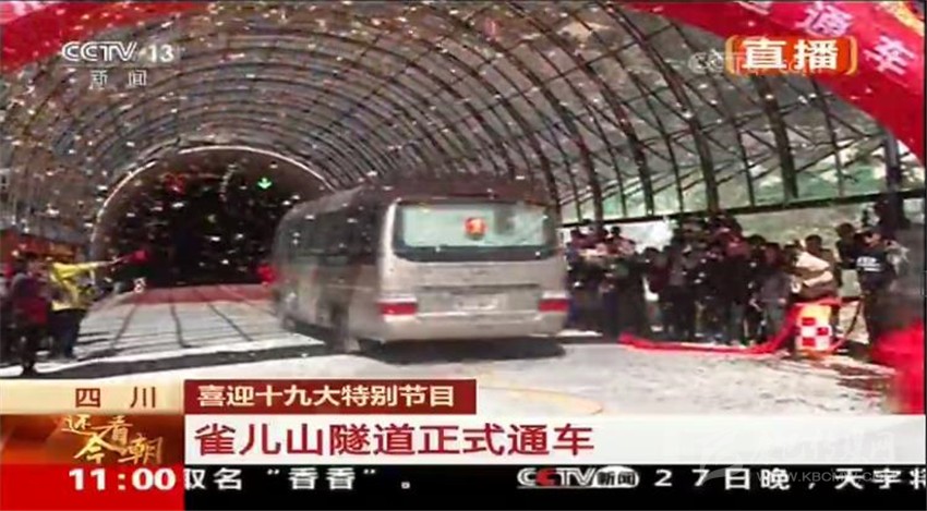 央視直播雀兒山隧道通車畫面