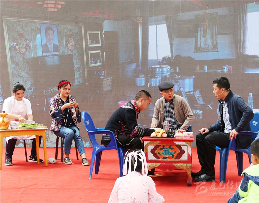 小品《我們的生活充滿陽光》、《我們的第一老書記》和情景劇《我要入黨》,對近年來,全州在州委的堅強領導下,在州人大常委會、州政府和州政協(xié)的齊心協(xié)力狠抓落實工作下,呈現(xiàn)出全州脫貧攻堅戰(zhàn)中,貧困地區(qū)所發(fā)生可喜變化?!段覀兊纳畛錆M陽光》反映了貧困家庭走向富裕后,記者采訪時所看到真實情況;《我們的第一老書記》真實再現(xiàn)一位近60多歲的人大機關派駐村第一書記,在忙碌地工作中,不顧妻子的反對仍然帶病堅持工作,為村干部樹立了榜樣,并得到了妻子的理解和支持;《我要入黨》反映的是一位50多歲老同志,得知如果不是黨員,是不能當駐村第一書記時,他不顧家人反對和相關部門的勸阻,在經過參加入黨積極分子培訓后,最終如愿以償舉起了右手。精彩的演出,把活動再次推向了高潮。