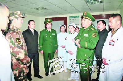 王建平在武警瀘定醫(yī)院看望慰問醫(yī)務(wù)工作者。