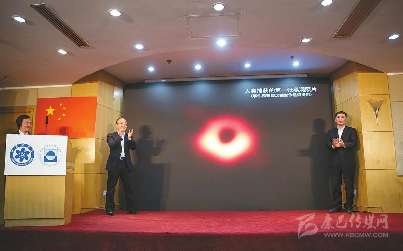 4月10日,中國科學院上海天文臺舉行新聞發(fā)布會,為人類史上首張黑洞照片揭幕。新華社記者 金立旺 攝