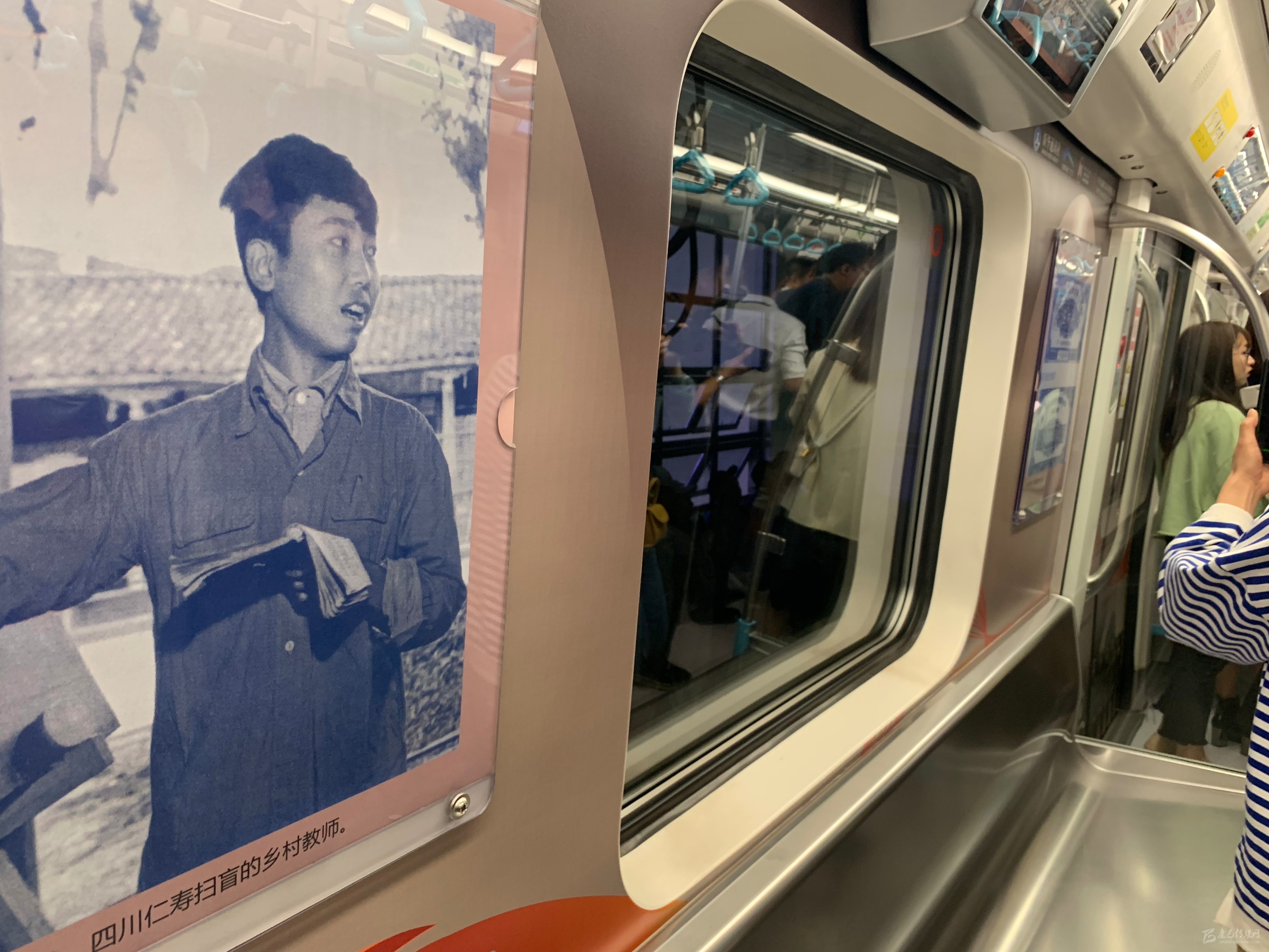 “這是成都地鐵第一列以紀(jì)實(shí)影像和文物打造的主題列車。在全國(guó)也是一次創(chuàng)新?!背啥架壍澜煌瘓F(tuán)黨群工作部副部長(zhǎng)周星說(shuō),為此,主辦方前期做了大量的圖片收集、挑選、審定和列車設(shè)計(jì)工作。