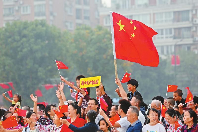 上午10時(shí),慶祝中華人民共和國(guó)成立70周年大會(huì)開(kāi)始。通過(guò)電視信號(hào),大會(huì)盛況傳遞至每個(gè)現(xiàn)場(chǎng)?!芭c祖國(guó)母親同在,祝福祖國(guó)繁榮昌盛。”這是大家共同的心聲。□本報(bào)記者 林凌 何勤華 程文雯 徐中成 陳碧紅 文莎