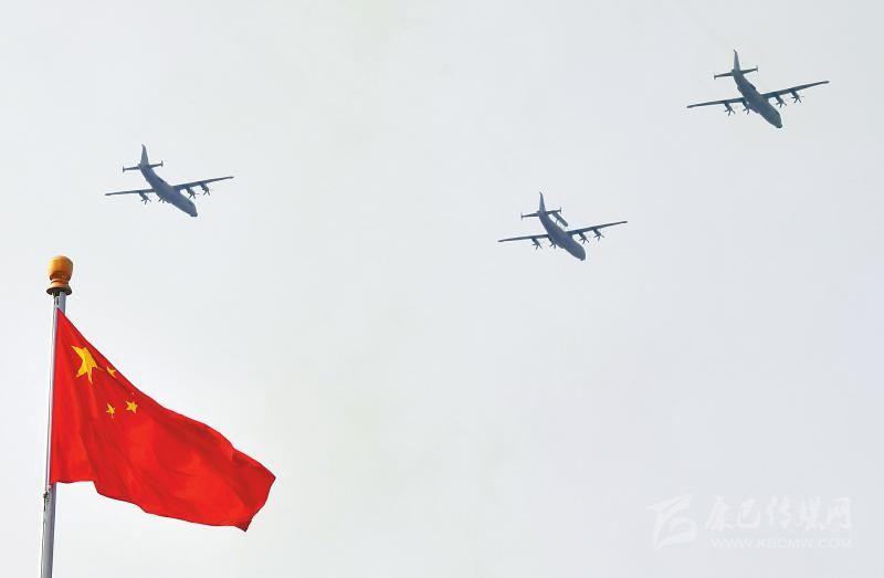 空警-500H預(yù)警機(jī)、空警-200H預(yù)警機(jī)、運(yùn)-8反潛巡邏機(jī)、運(yùn)-8技術(shù)偵察機(jī)組成的海上巡邏機(jī)梯隊,1日上午飛過天安門廣場上空,作為海軍新型信息作戰(zhàn)力量的4型特種機(jī)首次集體亮相。在海上巡邏機(jī)梯隊中,1架空警-500H預(yù)警機(jī)、2架運(yùn)-8反潛巡邏機(jī)組成的品字形編隊飛行在梯隊前方,緊隨其后的是1架空警-200H預(yù)警機(jī)和2架運(yùn)-8技術(shù)偵察機(jī)。