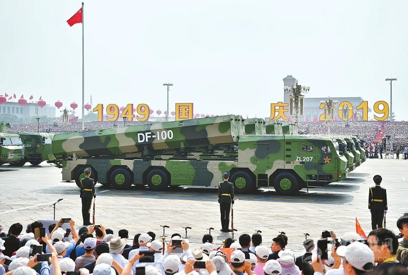 東風(fēng)-41核導(dǎo)彈方隊接受檢閱。 新華社記者王曄攝