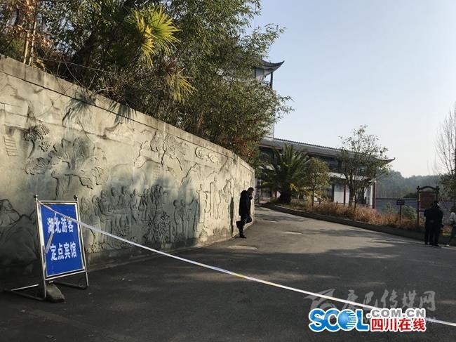 川北民俗文化園是此次廣元市確定的湖北游客定點(diǎn)賓館之一,1月29日,記者在川北民俗文化園看到,酒店門口有清楚的“湖北游客定點(diǎn)賓館”標(biāo)牌,2位戴著口罩的保安負(fù)責(zé)在門口勸返其他游客。院內(nèi)有10多位帶著工作證的工作人員在執(zhí)勤,對(duì)記者也進(jìn)行了詢問(wèn)。