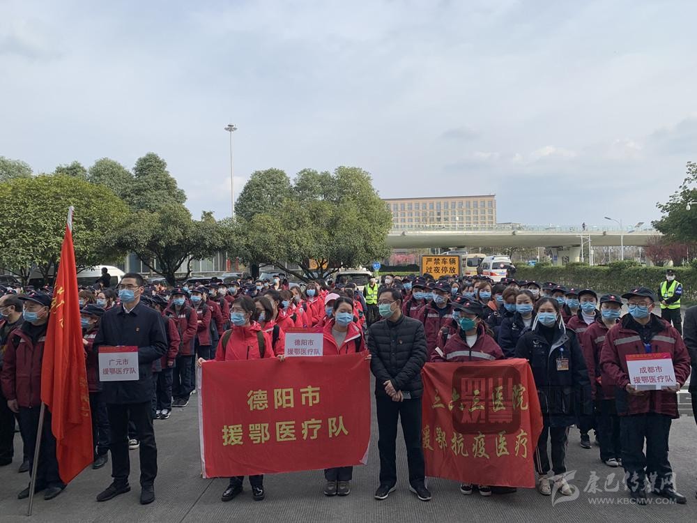 2月9日下午4點(diǎn),四川省第六批援助湖北醫(yī)療隊(duì)300名隊(duì)員在成都雙流機(jī)場(chǎng)集結(jié)完畢,現(xiàn)場(chǎng)舉行了出征儀式。