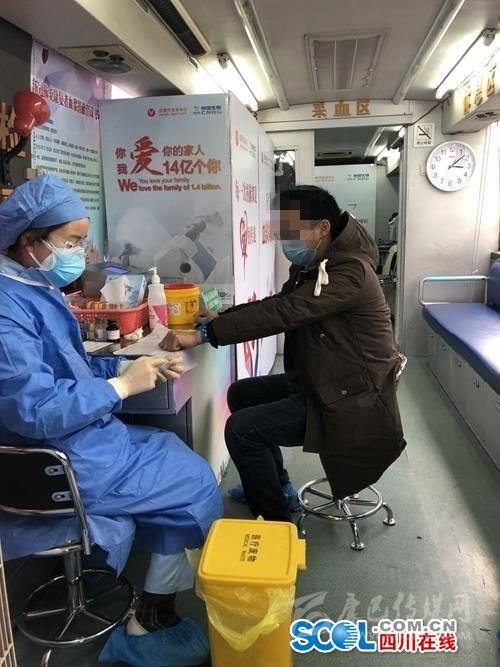 四川在線消息(記者 吳亞飛 文/圖)2月17日下午14點(diǎn),兩名新冠肺炎康復(fù)者,在成都市血液中心血漿采集專(zhuān)車(chē)上完成血漿捐獻(xiàn)。這是成都市在全省首次采集新冠肺炎康復(fù)者血漿,將用于新冠肺炎重癥、危重癥患者治療。