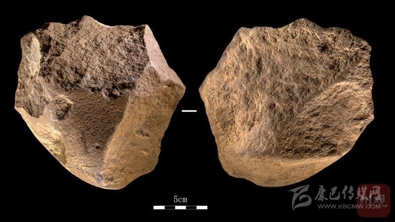 而不同石器有其獨(dú)特的功能,比如這件砍砸器,它看上去和普通石頭最像。但在考古人員眼里,這件石頭有鈍厚曲折的刃口,可起到劈砍、砸擊等作用,因而可以用于砍樹、做木棒、砸堅果等工作。