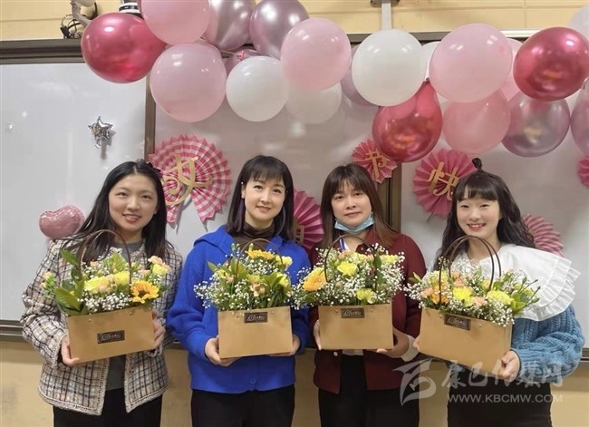 青白江華嚴(yán)小學(xué)校長(zhǎng)為過(guò)生日的老師送鮮花
