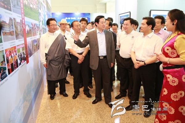 6月8日上午10時(shí),劉奇葆、王正偉來到民族文化宮,首先走進(jìn)四川甘孜藏區(qū)發(fā)展成就暨旅游圖片展現(xiàn)場。這里,展示的是甘孜藏區(qū)經(jīng)濟(jì)社會發(fā)展成就、自然風(fēng)光、歷史文化、民族風(fēng)情、田園藏寨等方面內(nèi)容的圖片。一幅幅圖片,一個(gè)個(gè)場景,劉奇葆都非常熟悉。在四川工作期間,他曾十幾次奔赴甘孜藏區(qū)考察,足跡遍布全州18個(gè)縣。劉奇葆仔細(xì)觀看展示圖片,并不時(shí)詢問交通通信、優(yōu)勢產(chǎn)業(yè)等發(fā)展情況以及民生改善的情況。劉奇葆說,甘孜山川秀美,民族風(fēng)情濃郁,是一方充滿生機(jī)和活力的土地,希望甘孜立足自身實(shí)際,大力發(fā)展農(nóng)牧業(yè)和文化旅游業(yè),大力加強(qiáng)生態(tài)建設(shè)和環(huán)境保護(hù),大力改善民生,努力走出藏區(qū)科學(xué)發(fā)展、跨越發(fā)展之路。