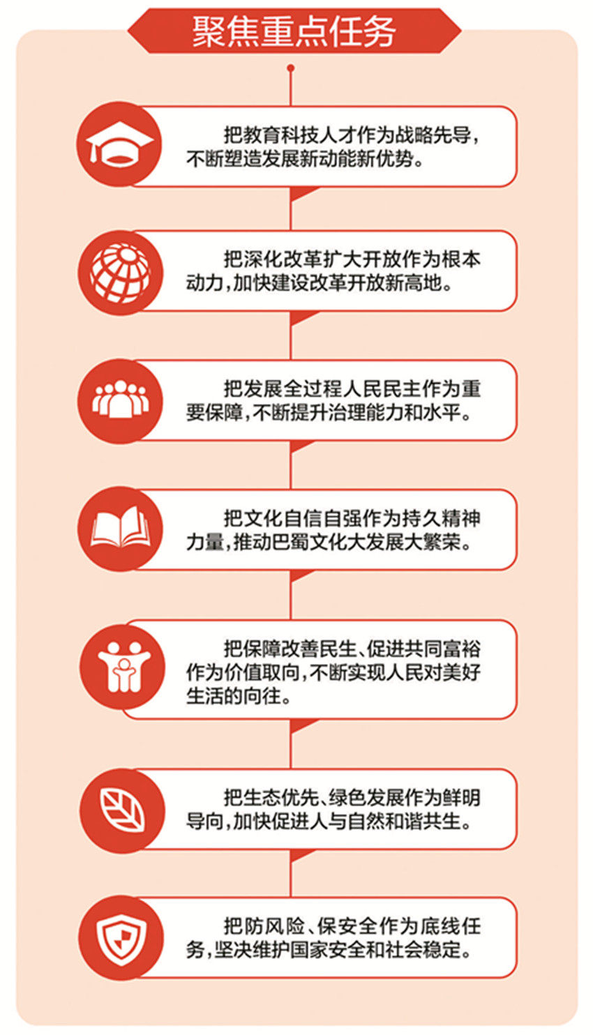 會(huì)議強(qiáng)調(diào),要準(zhǔn)確把握省委十二屆一次全會(huì)以來(lái)治蜀興川各項(xiàng)事業(yè)取得的重大進(jìn)展,更加深刻領(lǐng)悟“兩個(gè)確立”的決定性意義,聚焦中央部署和省委要求,保持戰(zhàn)略定力,堅(jiān)定信心和決心,繼續(xù)發(fā)揚(yáng)攻堅(jiān)克難、銳意進(jìn)取的務(wù)實(shí)作風(fēng),發(fā)揚(yáng)斗爭(zhēng)精神,增強(qiáng)斗爭(zhēng)本領(lǐng),奮力推動(dòng)甘孜長(zhǎng)治久安和高質(zhì)量發(fā)展,為譜寫四川現(xiàn)代化建設(shè)新篇章作出新的更大貢獻(xiàn)。要準(zhǔn)確把握擔(dān)負(fù)服務(wù)國(guó)家全局的六大時(shí)代使命,圍繞服務(wù)國(guó)家高水平科技自立自強(qiáng),加快建設(shè)稻城大科學(xué)裝置和天文科學(xué)研究基礎(chǔ)設(shè)施集群;圍繞經(jīng)濟(jì)和產(chǎn)業(yè)安全,加快構(gòu)建現(xiàn)代化產(chǎn)業(yè)體系;圍繞重要初級(jí)產(chǎn)品供給,牢牢守住耕地紅線和糧食安全底線;圍繞國(guó)家生態(tài)安全,筑牢長(zhǎng)江黃河上游生態(tài)屏障;圍繞構(gòu)建對(duì)外開放新格局,深化東融、西聯(lián)、南拓、北延的開放新態(tài)勢(shì);圍繞落實(shí)治藏安邊方略,以鑄牢中華民族共同體意識(shí)為主線,建設(shè)更高水平的平安甘孜。要準(zhǔn)確把握“四化同步、城鄉(xiāng)融合、五區(qū)共興”的豐富內(nèi)涵,立足川西北生態(tài)示范區(qū)定位,推進(jìn)新型工業(yè)化,發(fā)展飛地經(jīng)濟(jì),有序開發(fā)清潔能源,加快打造國(guó)家重要清潔能源基地;推進(jìn)信息化,強(qiáng)化數(shù)字賦能,加快建設(shè)“數(shù)字甘孜”;推進(jìn)城鎮(zhèn)化,以縣城為重要載體,建好副中心城市,提高城鎮(zhèn)化率,促進(jìn)城鄉(xiāng)區(qū)域協(xié)調(diào)發(fā)展;推進(jìn)農(nóng)業(yè)現(xiàn)代化,打造圣潔甘孜和亞克甘孜品牌,建設(shè)有機(jī)之州,鞏固拓展脫貧攻堅(jiān)成果,實(shí)施鄉(xiāng)村振興戰(zhàn)略,促進(jìn)共同富裕,努力走出一條具有甘孜特色、融入和服務(wù)全省大局的現(xiàn)代化之路。