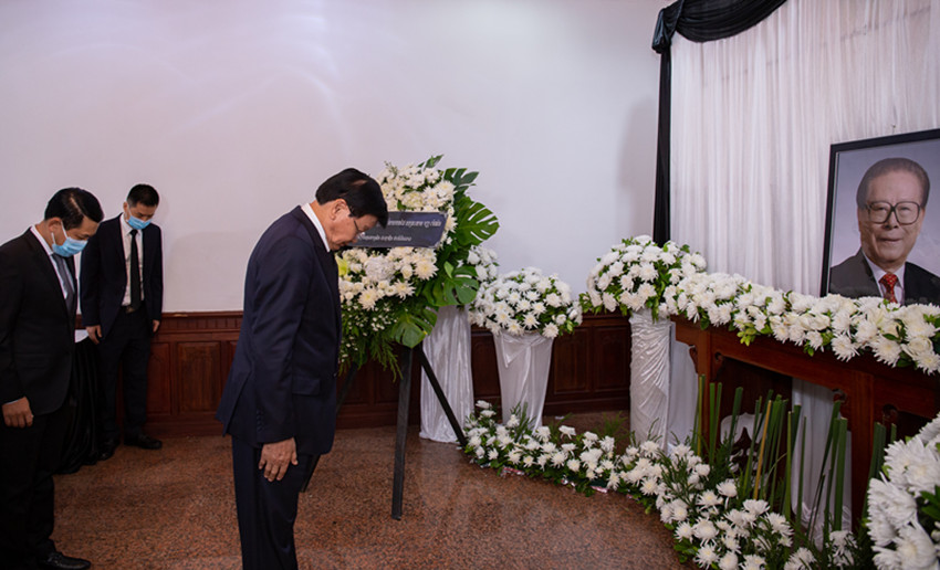 12月5日,老撾人民革命黨中央總書記、國家主席通倫在中國駐老撾大使館吊唁江澤民同志。 凱喬 攝(新華社 發(fā))