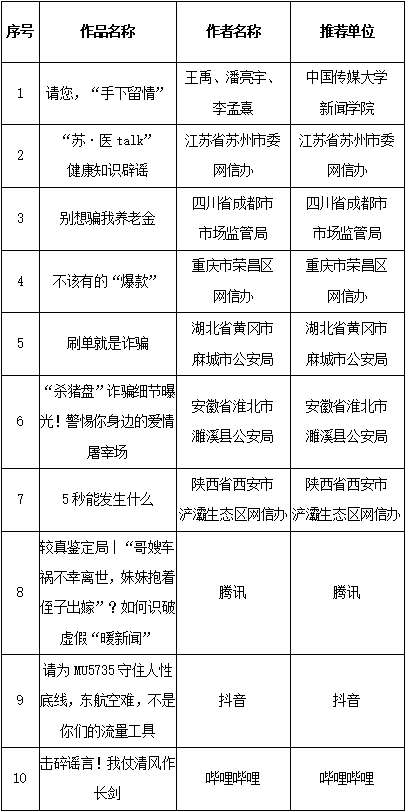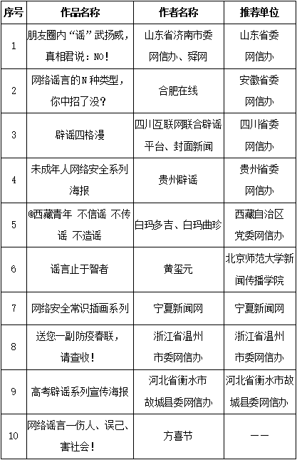 附:第五屆中國互聯(lián)網(wǎng)辟謠優(yōu)秀作品獲獎名單