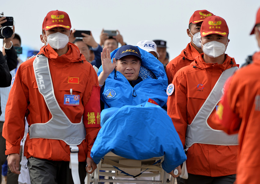 6月4日,神舟十五號(hào)載人飛船返回艙在東風(fēng)著陸場(chǎng)成功著陸,神舟十五號(hào)載人飛行任務(wù)取得圓滿(mǎn)成功。這是航天員費(fèi)俊龍揮手致意。 新華社 發(fā)