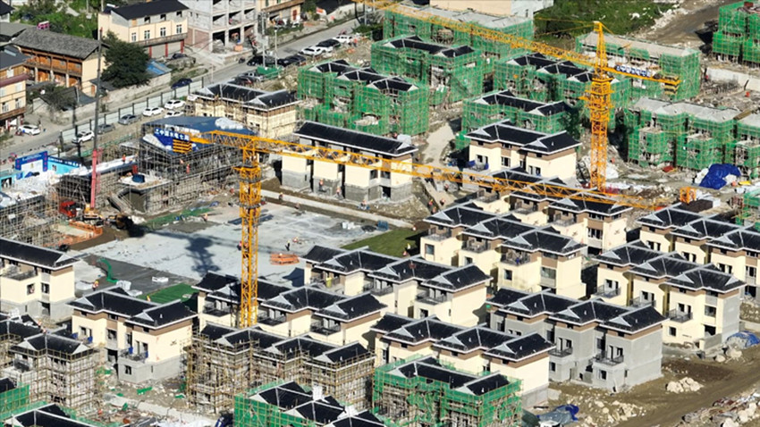 9月11日,在瀘定縣得妥鎮(zhèn)繁榮村,瀘定地震后首批過渡安置房開工建設(shè)。