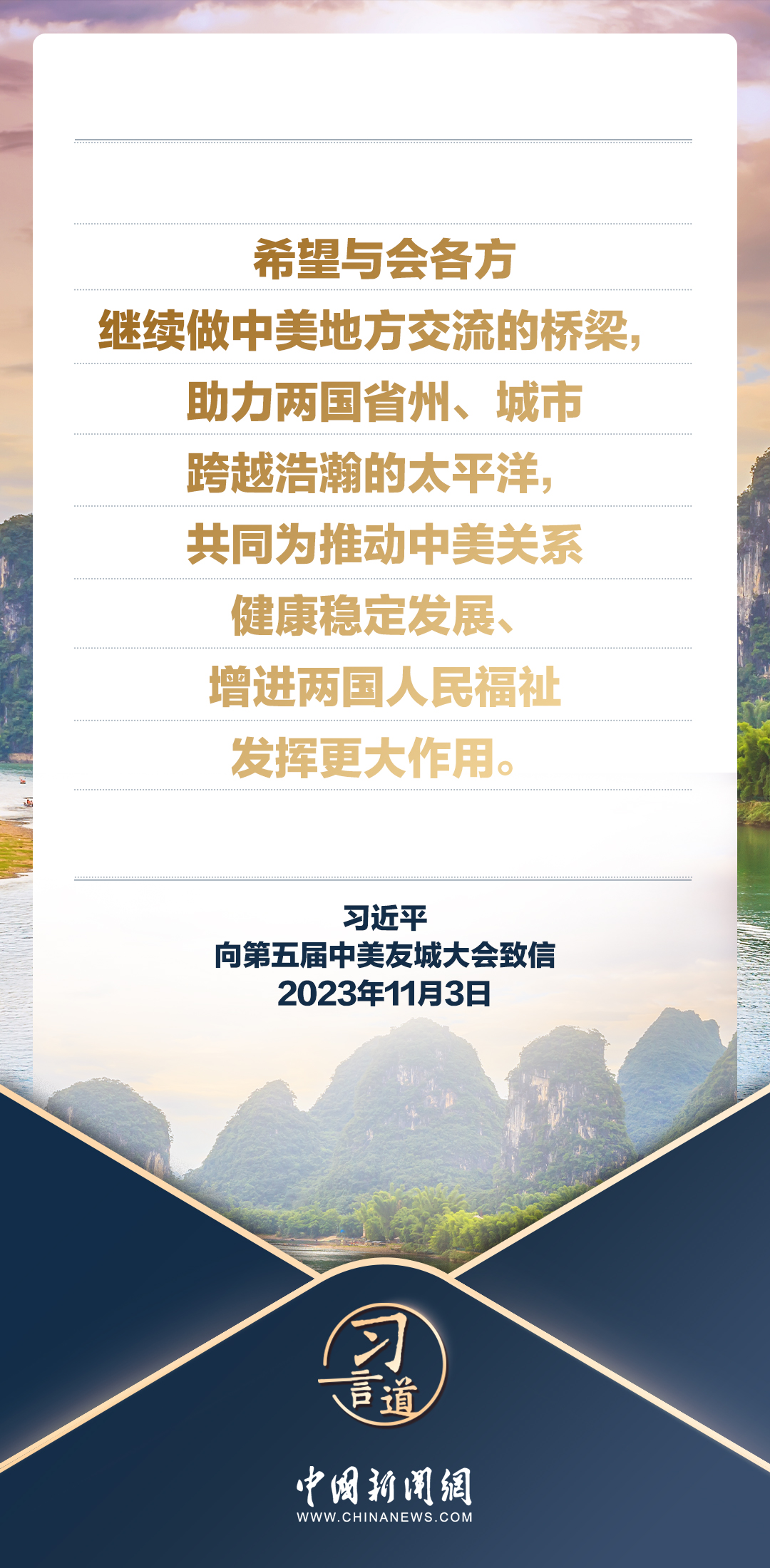 11月3日,國家主席習近平向第五屆中美友城大會致信。習近平指出——