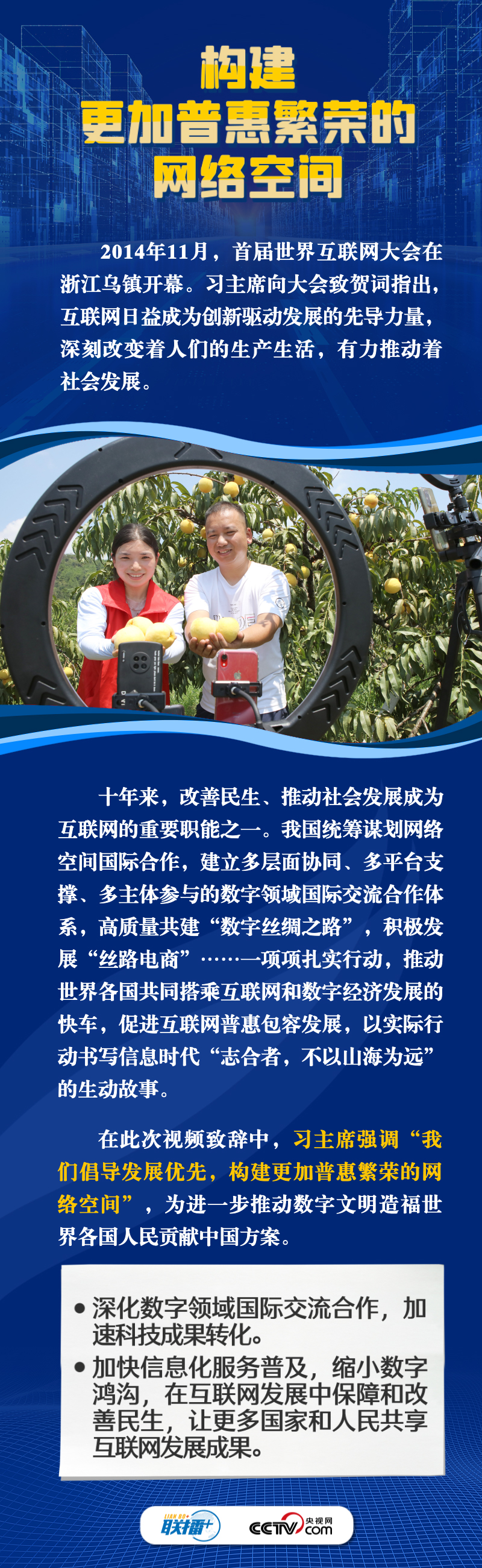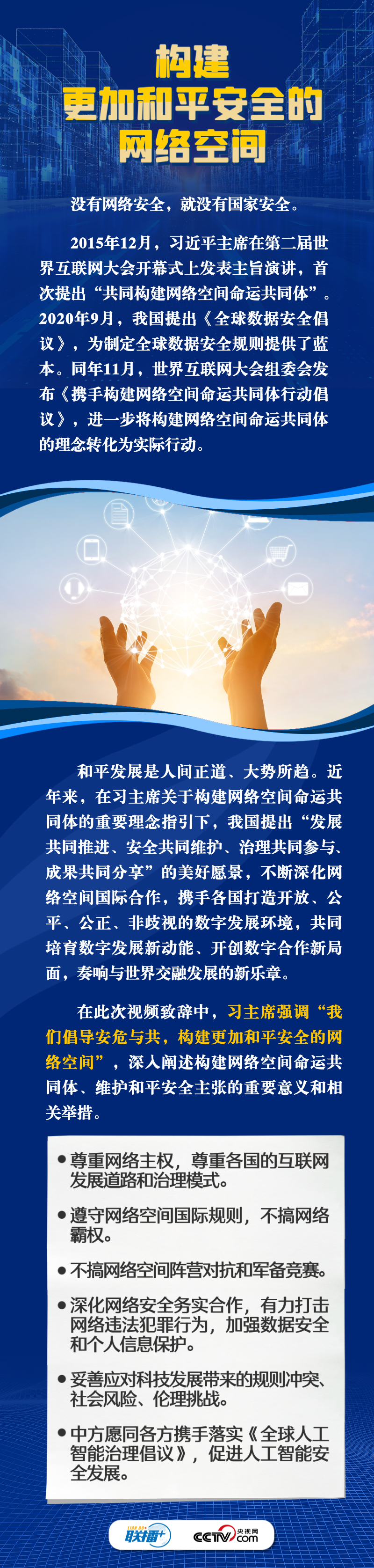 聯(lián)播+11月8日,習(xí)近平主席向2023年世界互聯(lián)網(wǎng)大會(huì)烏鎮(zhèn)峰會(huì)開幕式發(fā)表視頻致辭。自2014年首屆世界互聯(lián)網(wǎng)大會(huì)舉辦以來,習(xí)主席通過發(fā)表主旨演講、視頻致辭或者向大會(huì)發(fā)來賀信等不同形式關(guān)心大會(huì)的舉辦,始終倡導(dǎo)構(gòu)建網(wǎng)絡(luò)空間命運(yùn)共同體,得到國際社會(huì)廣泛認(rèn)同和積極響應(yīng)。
