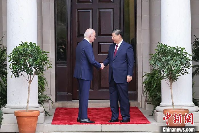當地時間11月15日,中國國家主席習近平在美國舊金山斐洛里莊園同美國總統拜登舉行中美元首會晤。中新社記者 盛佳鵬 攝