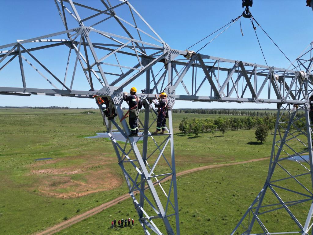 在烏拉圭的派桑杜省,一座座銀色的高壓電鐵塔在廣闊的草原上次第而立。中國(guó)和烏拉圭工人共同搭建著新的鐵塔。在“一帶一路”合作框架下,由中國(guó)中設(shè)集團(tuán)總承包的烏拉圭500千伏輸變電環(huán)網(wǎng)閉合項(xiàng)目跨越了烏拉圭北部5個(gè)省份。