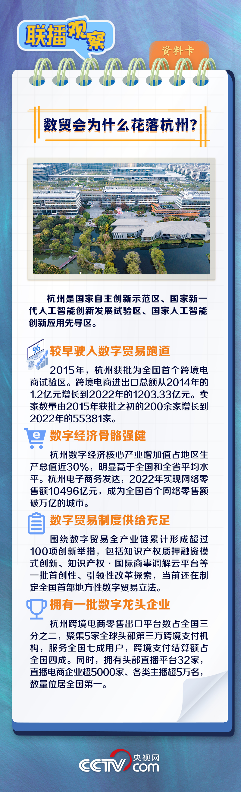 當(dāng)前,貨物貿(mào)易和服務(wù)貿(mào)易都呈現(xiàn)出不可逆的數(shù)字化轉(zhuǎn)型趨勢。什么是數(shù)字貿(mào)易?本屆數(shù)貿(mào)會(huì)有什么看點(diǎn)和亮點(diǎn)?我國數(shù)字貿(mào)易有何發(fā)展成果?央視網(wǎng)《聯(lián)播觀察》與您一同了解。