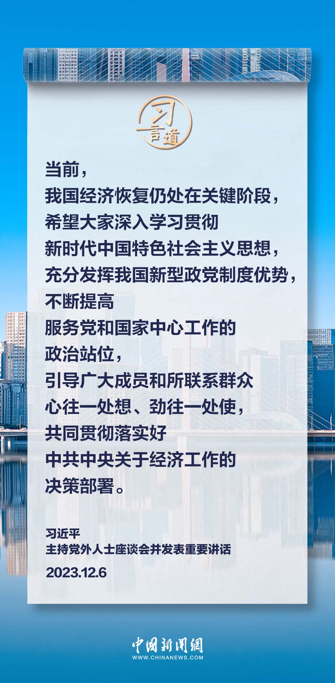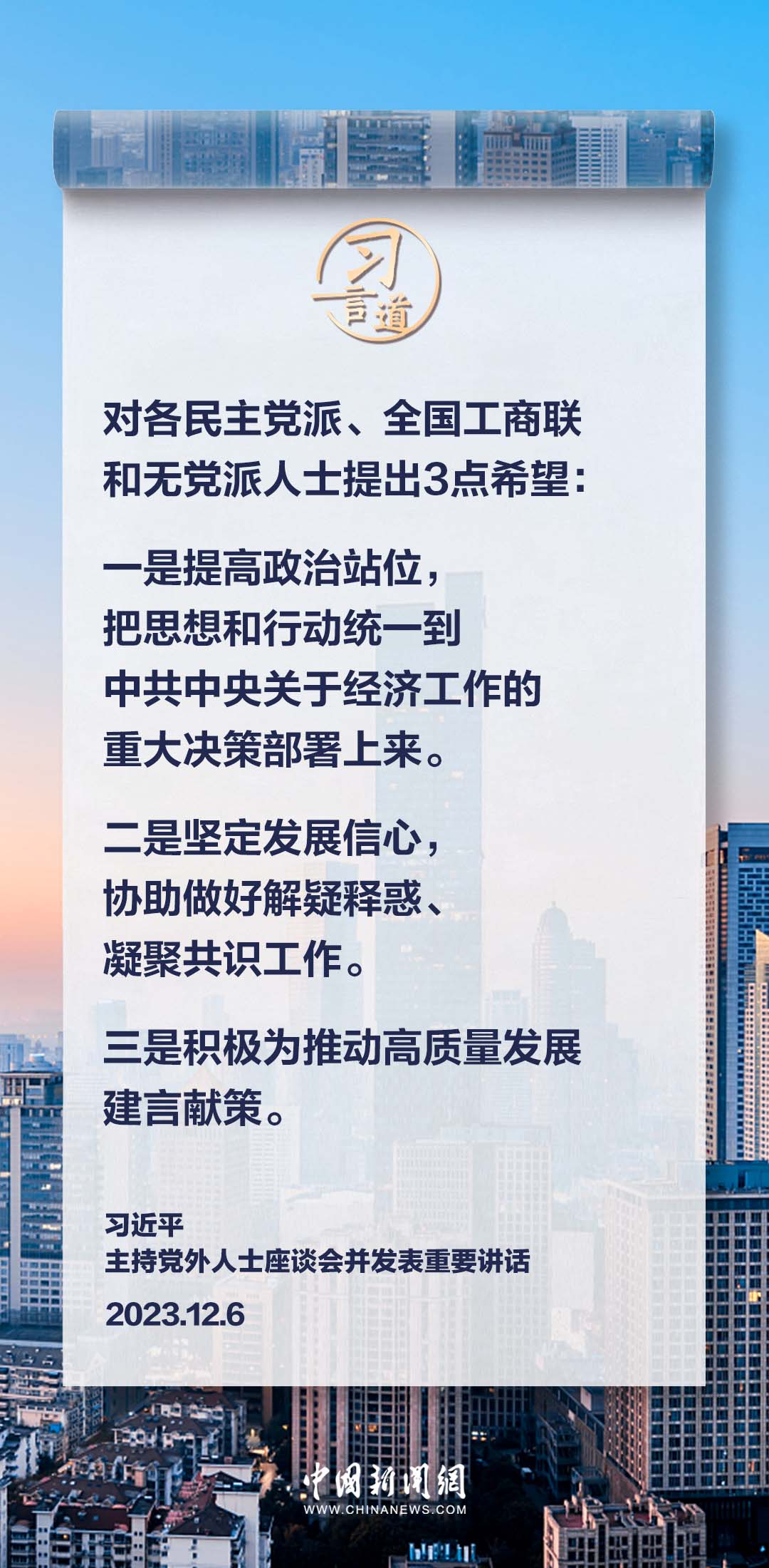12月6日,中共中央在中南海召開黨外人士座談會(huì),就今年經(jīng)濟(jì)形勢(shì)和明年經(jīng)濟(jì)工作聽取各民主黨派中央、全國(guó)工商聯(lián)負(fù)責(zé)人和無黨派人士代表的意見和建議。中共中央總書記習(xí)近平主持座談會(huì)并發(fā)表重要講話。