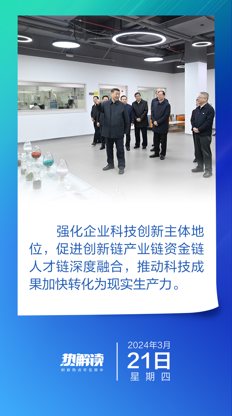 聽取湖南省委和省政府的工作匯報(bào),總書記再提新質(zhì)生產(chǎn)力,同樣提到科技成果轉(zhuǎn)化問題:“促進(jìn)創(chuàng)新鏈產(chǎn)業(yè)鏈資金鏈人才鏈深度融合,推動(dòng)科技成果加快轉(zhuǎn)化為現(xiàn)實(shí)生產(chǎn)力?!?/span>