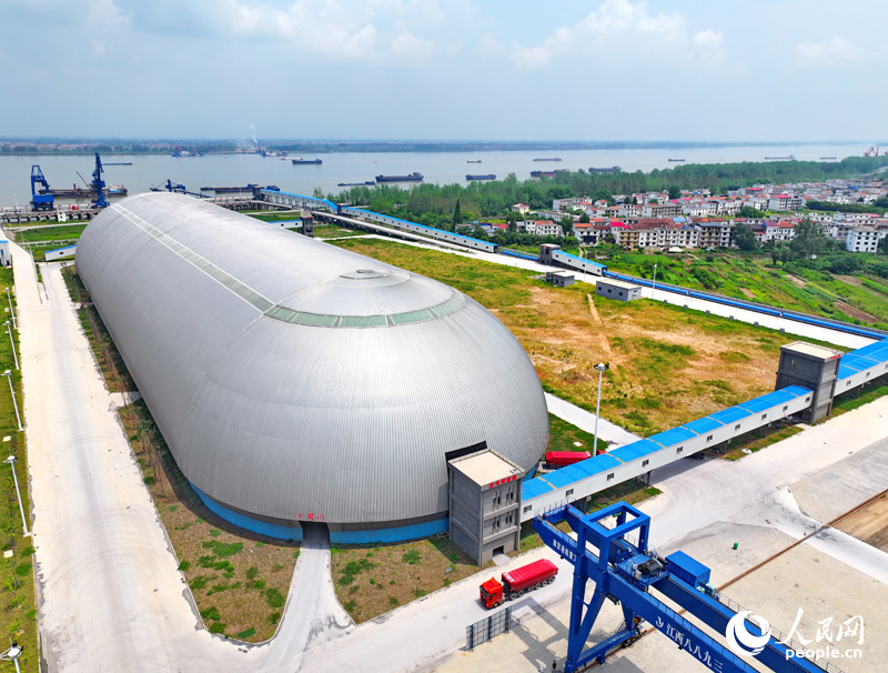 位于九江柴桑區(qū)的九江港赤湖作業(yè)區(qū)公用碼頭的“膠囊”倉庫,是全國第二個、江西首個新型智慧散貨碼頭。人民網 朱海鵬攝