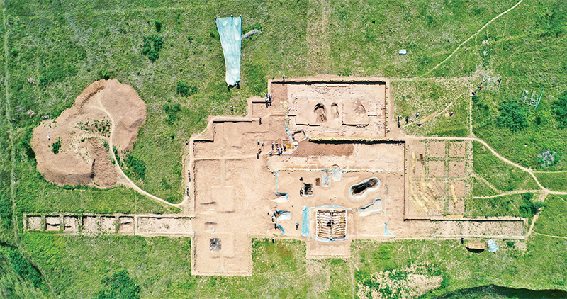 甘肅省隴南市禮縣一帶是早期秦文化發(fā)祥地,被譽為“秦人故里”。四角坪遺址位于禮縣四格子山頂部,是目前已發(fā)現(xiàn)的罕見的規(guī)模宏大、格局規(guī)整的秦代大型建筑群,體現(xiàn)了中國古代統(tǒng)一國家形成初期的風格和氣魄,被評為2023年度全國十大考古新發(fā)現(xiàn)之一。圖為2022年6月10日拍攝的考古發(fā)掘現(xiàn)場。 新華社記者 陳斌/攝