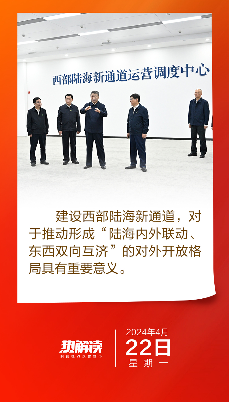調研西部陸海新通道,總書記指出,各有關方面要齊心協(xié)力,把這一標志性項目建設好、運營好,帶動西部和內(nèi)陸地區(qū)高水平對外開放。