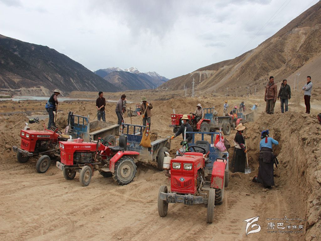 在當(dāng)巴村施工路段,近百余名群眾在一處沙石采集地干得熱火朝天,負(fù)責(zé)這一路段的鄉(xiāng)干部告訴筆者,在這次全區(qū)義務(wù)修路過程中,一共投入了300多輛拖拉機(jī)和五臺裝載機(jī),拖拉機(jī)大部分是群眾自愿開來幫忙的,區(qū)上為施工最困難的幾個路段想法借了五臺裝載機(jī),雖然工程機(jī)械相當(dāng)缺乏,但好在人多,而且干活團(tuán)結(jié),工作效率一下就提上去了。