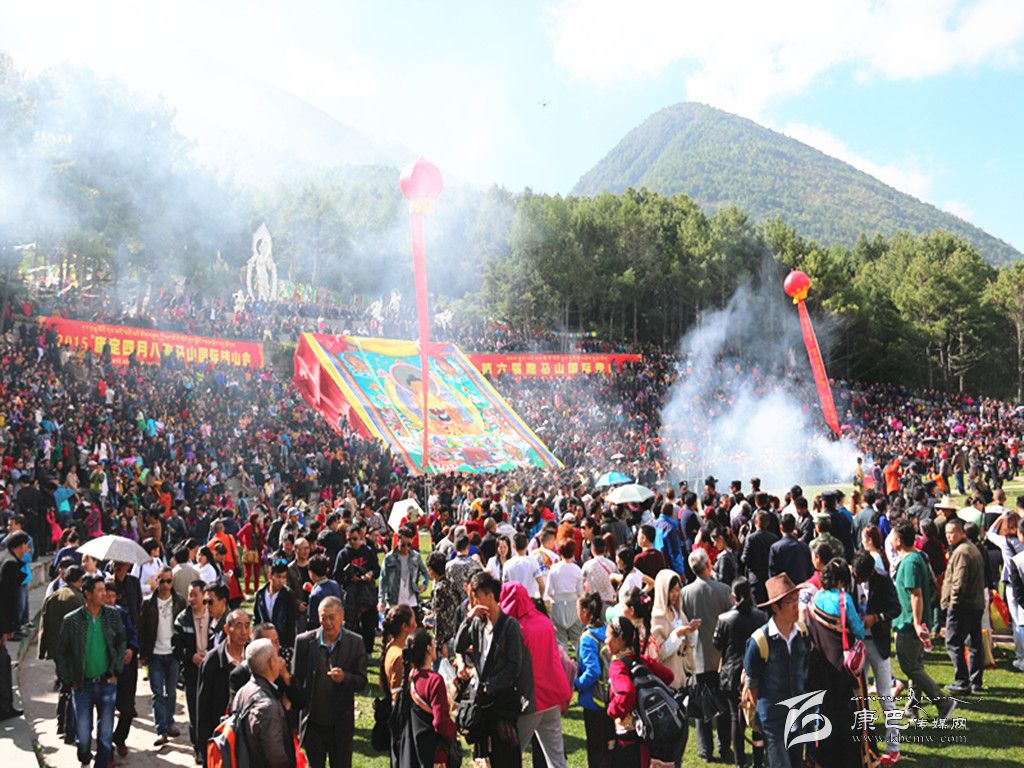 康定“四月八”跑馬山轉(zhuǎn)山會(huì),是自藏傳佛教入康定起就有的活動(dòng),至今已有千年歷史。相傳農(nóng)歷四月初八是佛祖釋迦牟尼的誕辰日,這天跑馬山頂?shù)奈迳V杏芯艞l龍吐水為佛祖沐浴,故稱浴佛節(jié)。人們?yōu)榧o(jì)念這一吉祥日子,每逢農(nóng)歷四月初八,便從四面八方不約而同云集康定跑馬山上,載歌載舞,預(yù)祝豐收,場(chǎng)面壯觀,熱鬧非凡。據(jù)初步統(tǒng)計(jì),在今年四月八當(dāng)天,共有近四萬(wàn)名各族群眾、游客齊聚跑馬山歡度傳統(tǒng)佳節(jié)。