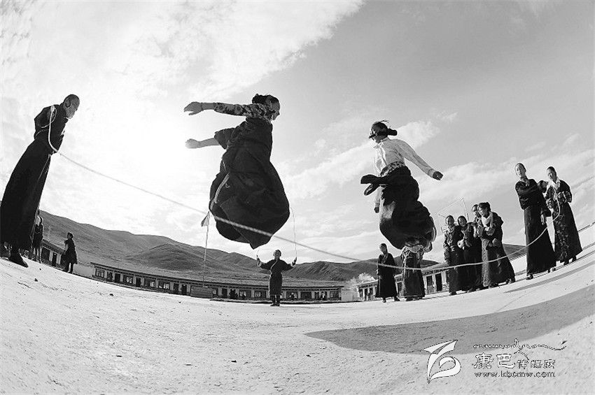 石渠縣蒙沙鄉(xiāng)奪呷村小的孩子們在操場上跳繩。