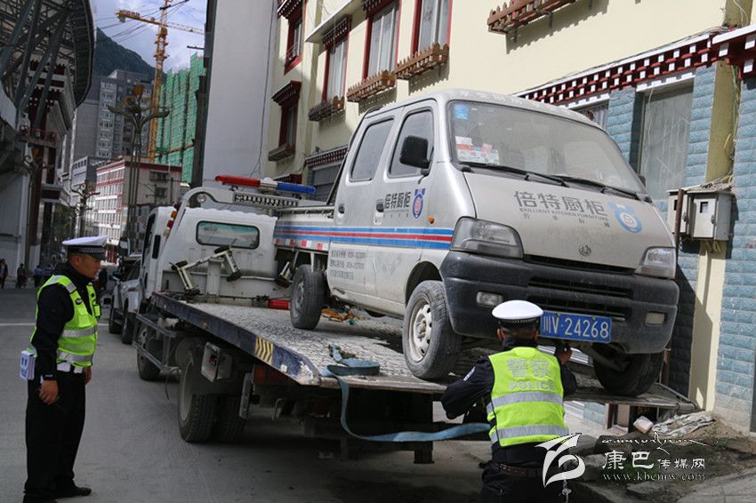 本網(wǎng)訊(記者 鄧安華 唐闖 文/圖)2日上午,記者在康定市北門(mén)體育場(chǎng)附近看見(jiàn)幾名交警正在拖移亂停亂放在街邊的一臺(tái)車(chē)輛。據(jù)悉,為保證藝術(shù)節(jié)期間康定主城區(qū)的交通順暢,康定市公安局交警大隊(duì)從當(dāng)天起以康定主城區(qū)為中心,嚴(yán)厲查處影響交通秩序的各類(lèi)突出交通違法行為。