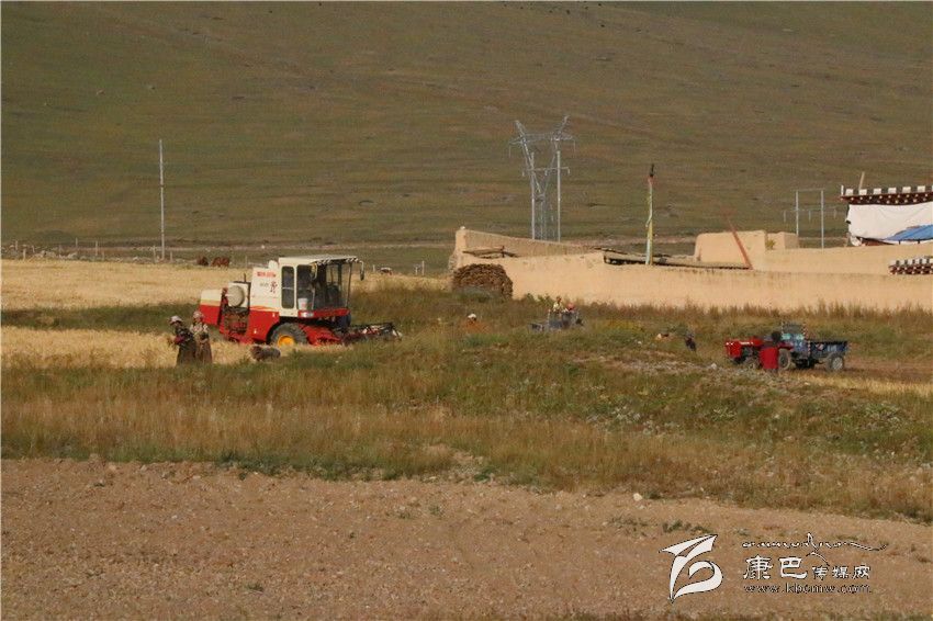 本網(wǎng)訊(見習記者 劉小兵文/圖)甘孜縣土地廣闊、氣候相對溫和,素有“康北糧倉”的美譽。眼下正是秋收時節(jié),該縣田間地頭一片金黃,隨處可見村民正在收割機、拖拉機等大型農(nóng)用機具的輔助下?lián)屖涨囡D為甘孜縣拉尼村的秋收場面。