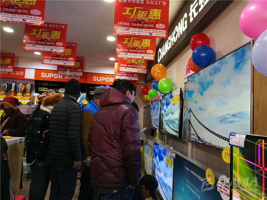 在甘孜縣的超市里,以年貨為主打的商品琳瑯滿目,滿眼可見(jiàn)迎新大禮包、過(guò)年促銷廣告。