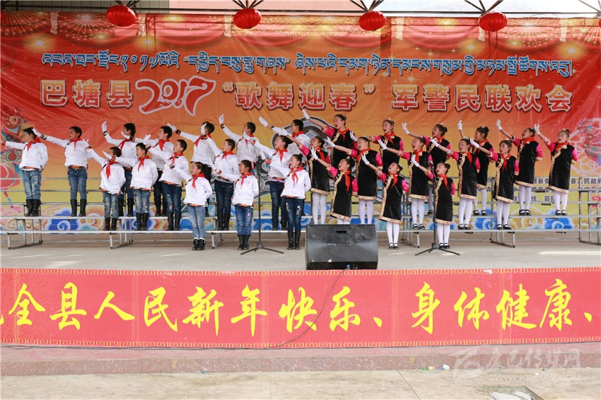 本網(wǎng)訊 (賴禎鵬 文/圖)2月10日,巴塘縣體育活動(dòng)中心熱鬧非凡。2017歌舞迎春軍警民聯(lián)歡活動(dòng)隆重舉行。藝術(shù)團(tuán)、駐巴部隊(duì)、政法單位等選送的20余個(gè)節(jié)目,為觀眾獻(xiàn)上了一場(chǎng)歡度元宵節(jié)的民族民間歌舞盛宴。