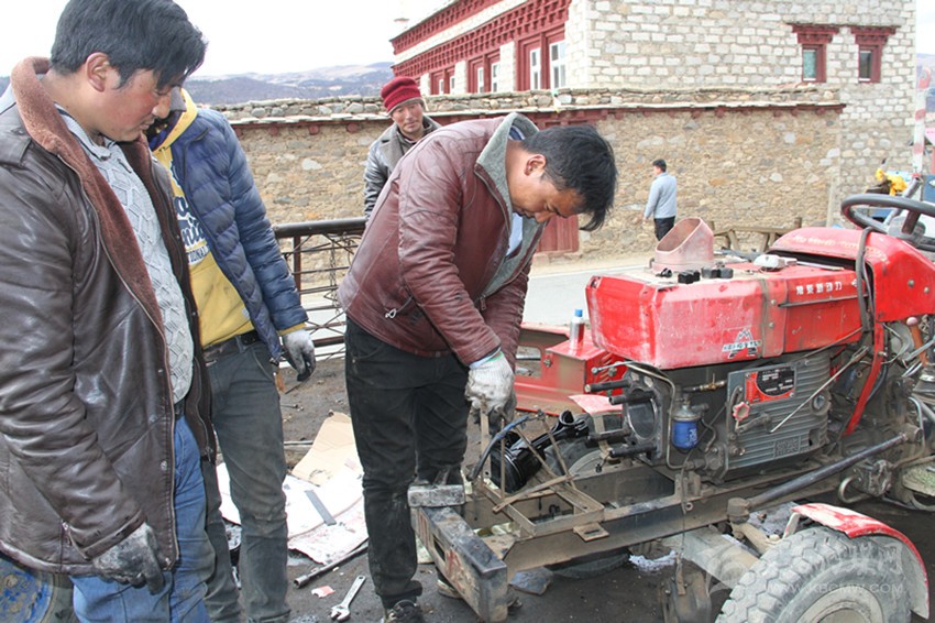 有的人家農(nóng)機(jī)壞了,又不好拖運(yùn)到壓瑪維修店里的,只要一個電話,壓瑪就自己開車到別人家里去修,不收出工費(fèi),只收維修費(fèi)。這樣的事情十分常見。今年2月20日晚上,格西村阿昂家里的拖拉機(jī)壞了,第二天一早又要用,壓瑪師傅騎著摩托車趕了7公里夜路,修好后只收了120元零件費(fèi)。阿昂說:“要是拖到縣城修,少了1000多元脫不了手,還不算吃住和耗費(fèi)的時間?!?/span>