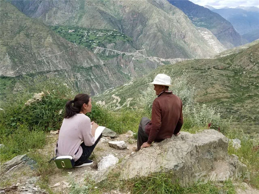 松麥鎮(zhèn)紀(jì)檢干部沖拉姆在扎丁村調(diào)查了解村民意見(jiàn)。