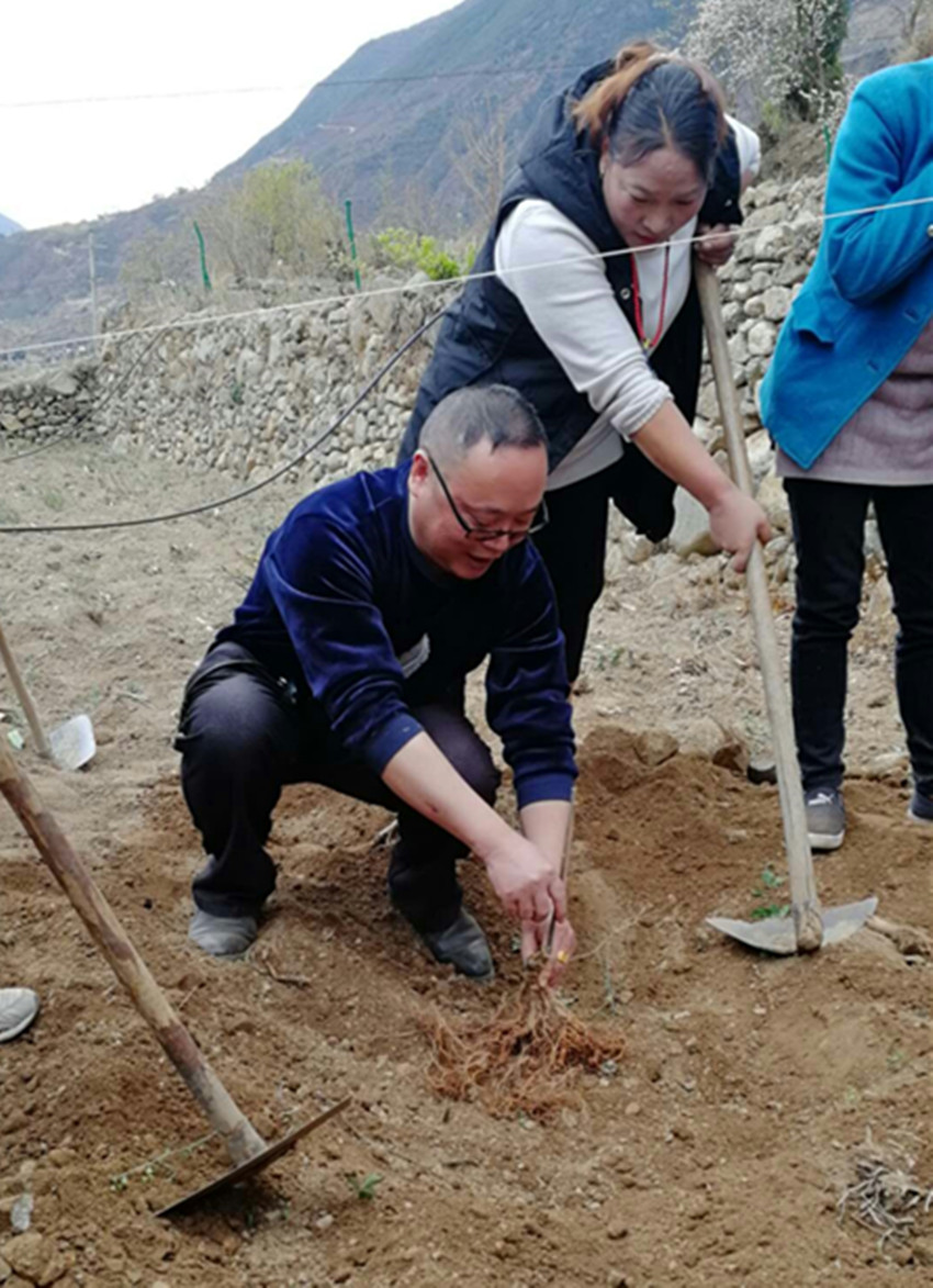 專家手把手指導(dǎo)農(nóng)戶種植獼猴桃技術(shù)。