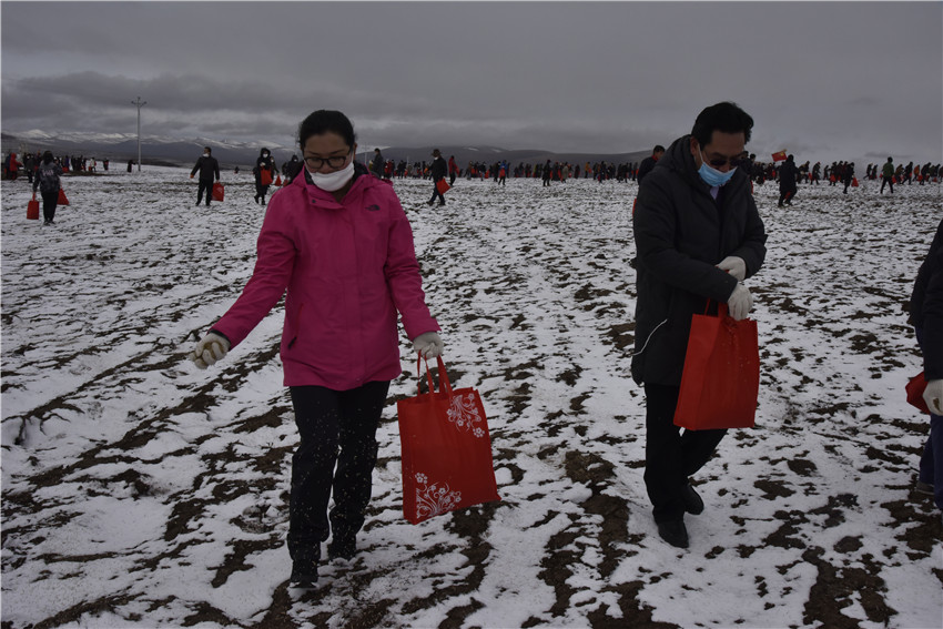近日,受海拔和氣候條件影響的石渠縣迎來了晚春,該縣1000余名干部群眾來到距縣城20余公里的德榮瑪鄉(xiāng)生態(tài)草場保護建設(shè)示范點,開始了一場干群共同參與的種草、滅鼠行動。