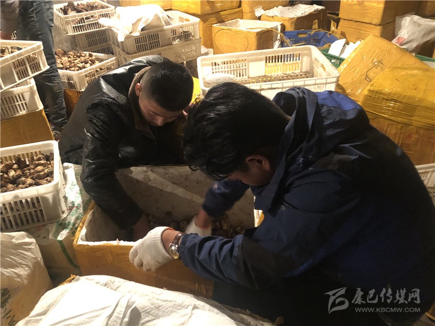 稻城全縣各鄉(xiāng)鎮(zhèn)老百姓白天新采摘的松茸當(dāng)天就運到這里,分類后將通過航空運輸發(fā)往全國各地。