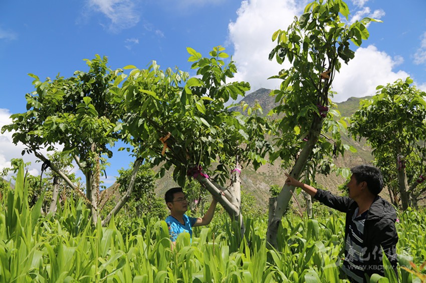 “一畝地最多栽種25棵,過密了只有數(shù)量沒有質(zhì)量;老品種要嫁接新品種,不改良沒質(zhì)量沒產(chǎn)量。”8月23日,巴塘縣環(huán)林局總工程師肖慶喜正在該村檢查去年進(jìn)行嫁接改良的核桃苗。