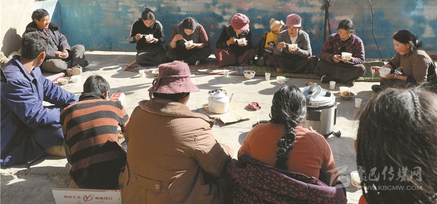 “請(qǐng)注意腳下哈,不要絆倒了喲!你們把這趟搬了就過(guò)來(lái)吃午飯,等吃完飯后再搬?!惫P者在金沙鄉(xiāng)八吉村采訪時(shí),親眼目睹了十幾個(gè)忙碌的身影穿梭在一頂帳篷與院壩之間。一經(jīng)打聽(tīng),原來(lái)是村民扎西多吉的親戚和鄰居在幫他搬運(yùn)柴火。