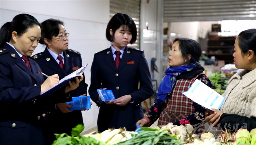 在菜市場宣傳“減稅降費”。
