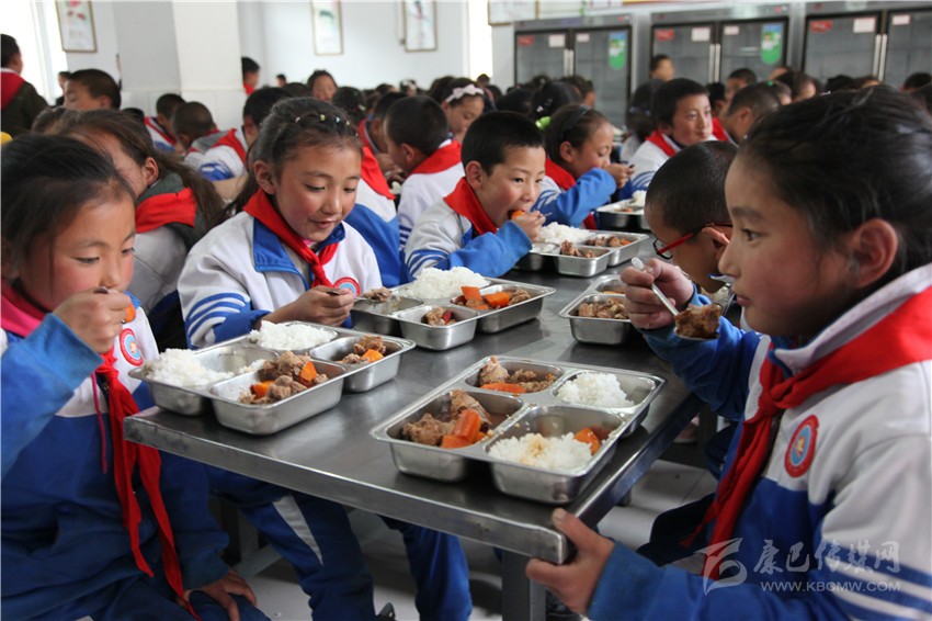 在樂安鄉(xiāng)幼兒園,教師杜然靜和其美志瑪正在組織幼兒在“淘氣堡”游玩,童真在陽光下綻放;在城區(qū)二完小食堂,學生們盛著可口的飯菜,吃得津津有味。筆者見此情景,隨意問道:“同學們,飯菜好吃嗎?”“好吃!”